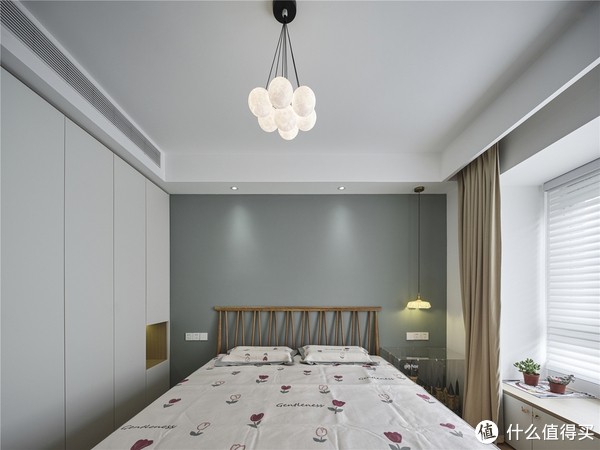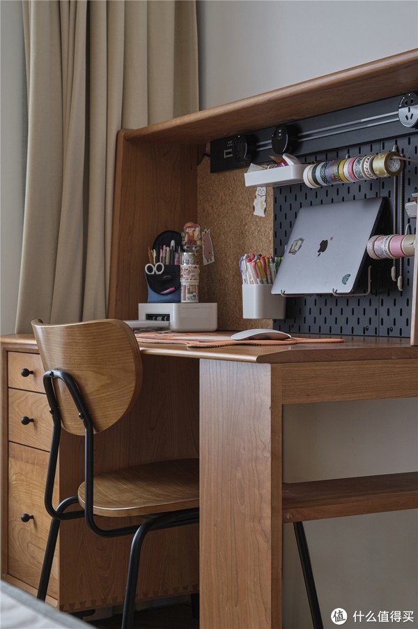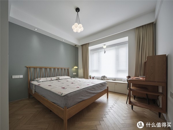 床尾放置了多功能桌,女主人夜晚可批改作业,早上能梳妆打扮。