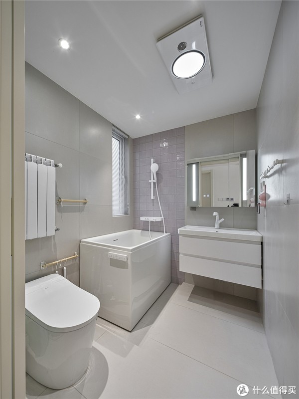 主卧室卫生间放了一个大浴缸,睡前泡个澡,一身轻松。