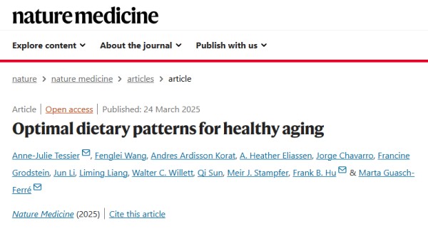 《Nature Medicine》杂志刊登了一项历时数十年的重磅研究“Optimal dietary patterns for healthy aging”,这项研究如同拨开迷雾,为我们揭示了健康老去的关键“饮食密码”。研究团队追踪了超过十万名参与者长达30年的饮食习惯,并细致评估了他们在70岁后的健康状况,涵盖了认知功能、身体机能、心理健康以及是否罹患多种慢性疾病。这项大规模、长时间的队列研究,其严谨性和权威性毋庸置疑。