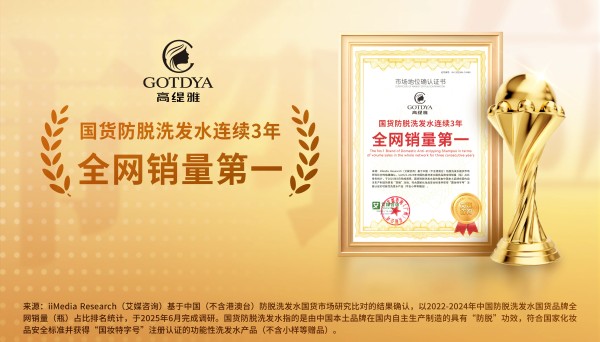 2025年6月,高缇雅获全球领先的新经济产业第三方数据挖掘和分析机构iiMedia Research(艾媒咨询)授予的“国货防脱洗发水连续三年全网销量第一”“中国防脱洗发水行业领导品牌”市场地位确认。