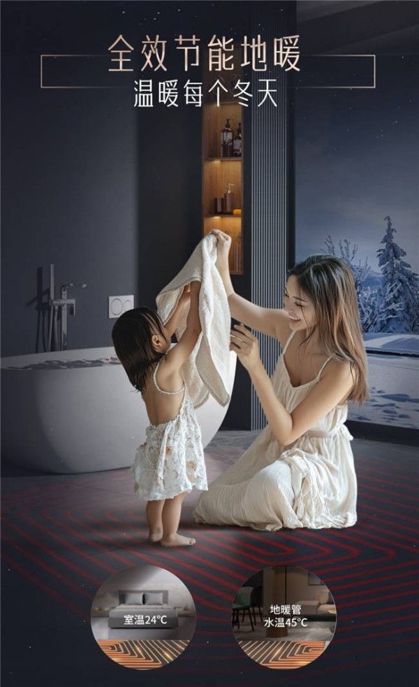 约克VRF中央空调新天氟地水/天氟热水在制热时还有全效智控地暖系统,通过自下而上辐射采暖,热从足起,更契合中医健康养生理念,随着热空气的自然上升实现温足凉顶,孩子光着脚丫也能随意玩耍,让全家人感受到真正的温暖与舒适。还有满性能急速制热,让温暖无需久等,以及除湿+地暖模式、离家节能模式,短时离家也能实现低耗运转。