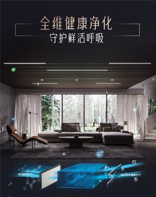 在约克VRF中央空调氟水跨界升级新品的创新科技演绎下,舒适是一键解决全屋空气问题的智慧解决方案,是无惧气候考验、带人们纵享四季舒适与惬意的现代化科技利器,也是助力生活品质提升、帮助人们感受生活美好和幸福温度的墅适理想体验。