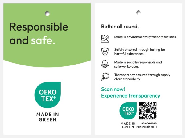 拥有OEKO-TEX® MADE IN GREEN吊牌/标签的的产品意味着:
