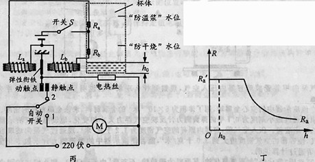 ②已知压敏电阻Ra的阻值随液面高度h的变化曲线如图丁所示,请结合Ra的变化曲线画出压敏电阻Rb的值随液面高度h变化的大致曲线,并在图中横坐标上标出“防干烧”水位h1和“防溢浆”水位h2。