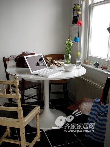Jeska是一位心灵手巧的女性,她的相册里面大量展示了Jeska的才华,她的室内设计的布局装饰,都是她的一时兴趣所致,每个角落都有N多的设计形式,隔三差五的就来一个变动,客厅,饭桌,工作室,卧室……她的手工艺品在家里展现出来,非常棒的组合。 这是客厅,东西多而不乱。