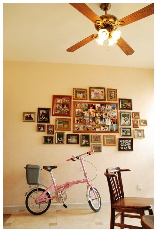 欧特饰家艺术墙 入户花园,自己钉的照片墙,中间是网上淘的软木框,这样方便懒人我更新照片。