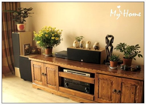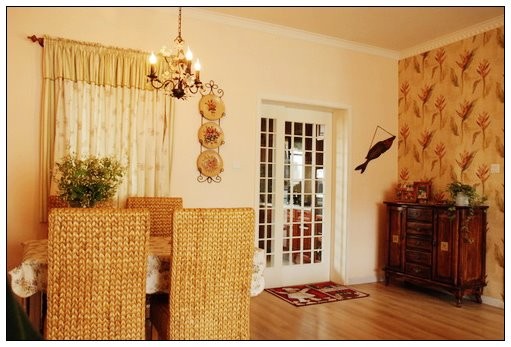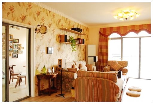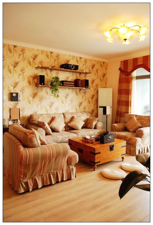 喜欢温馨随意的感觉,所以田园和乡村都是我喜欢的风格,索性把它们合二为一。让田园多一点粗旷与质朴,让乡村多一点细腻与温婉。新房已经住了一年多了,本人太懒,现在才收集整理一些照片与大家分享。设计都是自己做的主,虽然有很多不足,但住在里面感觉很温暖。 客厅,灯光下看着有点怀旧呢,田园乡村味道很浓郁。