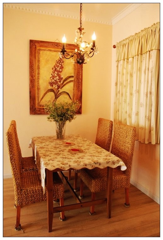 原点国际实木家具 进门餐厅。淘来的油画,很有质感。150元,餐椅也是网上买的,说是出口瑞士的,蒲草的,冬暖夏凉,自己很喜欢。