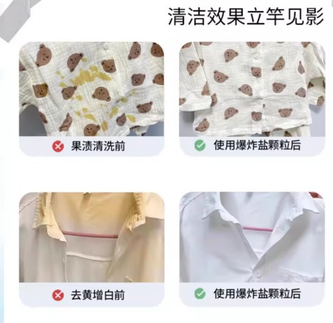 速泡净 作为活氧技术的集大成者,其核心成分过碳酸钠遇水后能释放出大量活性氧分子。这些微小的氧分子能够深入纤维内部,像专业的清洁小队一样,从根源上分解污渍,这种独特的清洁机制,使其在对付顽固污渍时显得游刃有余。