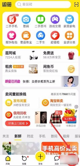 在手机上下载并打开闲鱼app,进入闲鱼主页
