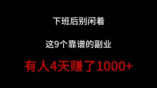 下班后别闲着!这9个靠谱副业,有人4天赚了1000+,副业赚钱的路子有哪些?