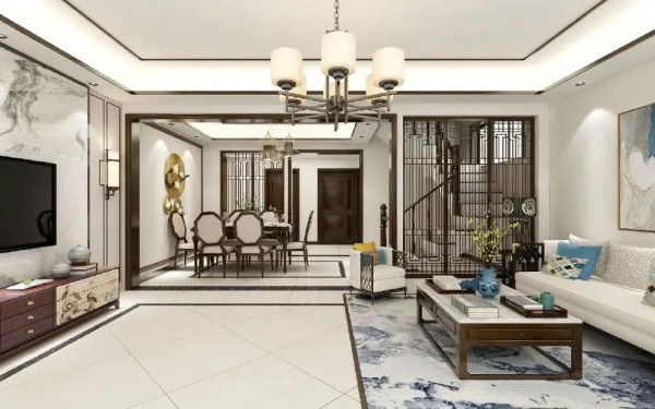 3. 创新融合:金属边框玻璃隔断、竹纤维墙板等新材料,平衡古典韵味与现代功能。