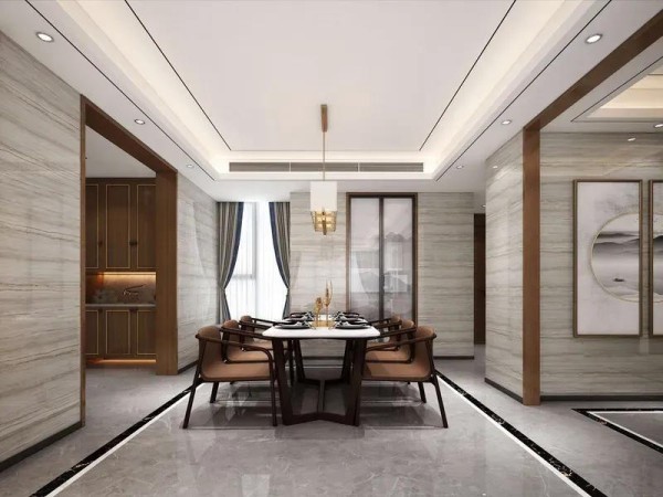 极简新中式摒弃传统中式的繁复堆砌,以“少即是多”为核心理念,通过大面积留白营造空间呼吸感。墙面以米白、浅灰为主色调,仅以一幅窄边水墨画或书法作品点缀,既保留文化底蕴,又避免视觉压抑。