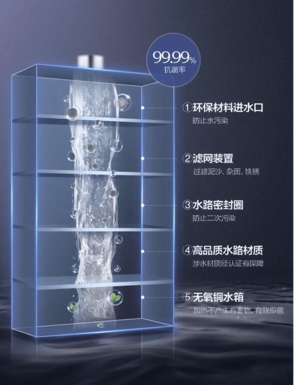 这款热水器采用高效换热系统,设计独特的自研聚能换热特护舱,极大提升了换热面积和效率,确保冷热水快速切换。即使在多重使用场景下,也能提供稳定而舒适的用水体验。无论是家庭成员同时沐浴,还是厨房忙碌时,都能轻松应对,满足不同需求。