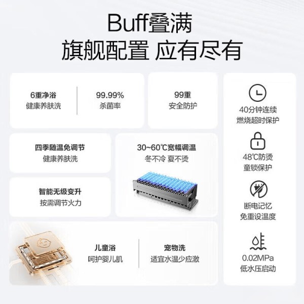 凭借强大的增压功能,即使在水压较低的环境中,依然能够提供源源不断的舒适热水体验,彻底解决了常见的水量不足烦恼。