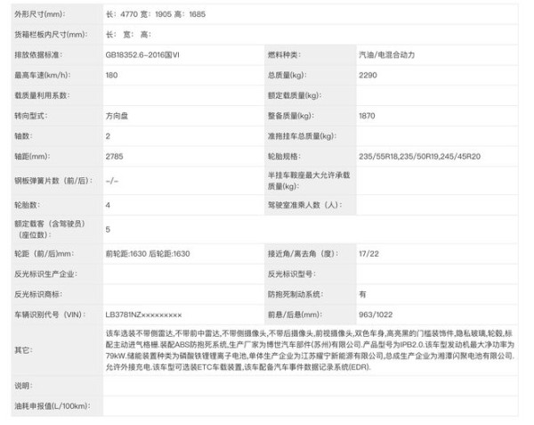 动力总成方面,全系搭载EM-i,也就是1.5L自然吸气发动机和单挡DHT变速箱,发动机输出功率为82千瓦,前驱电机预计160kW,这些都是吉利的成熟技术。这次申报的电池组容量有18.4度电和29.8度电两种,对应的纯电续航里程为101公里和155公里,亏电油耗为4.69-4.73升,全系都符合明年的5%购置税减免政策。