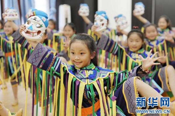 “一、二、三、四……”近日,湖北省鹤峰县思源实验学校舞蹈教室内,音乐老师周洲的节拍声清脆有力。古朴深沉的傩戏乐声中,学生们踏着节奏起舞,动作刚健粗犷,眼神专注执着。这堂别开生面的课后服务课,正悄然“唤醒”古老艺术,让被誉为戏剧“活化石”的鹤峰傩戏,在校园里焕发新生。