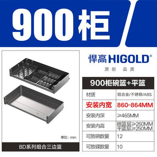 在参数方面,这款碗篮的安装内宽为860-864MM,深度≥465MM,高度则为碗篮层≥260MM和平蓝层≥250MM,完全可以满足大多数家庭的需求。同时,您还可以存放多达12个碗和10个碟,充分满足日常使用需求。