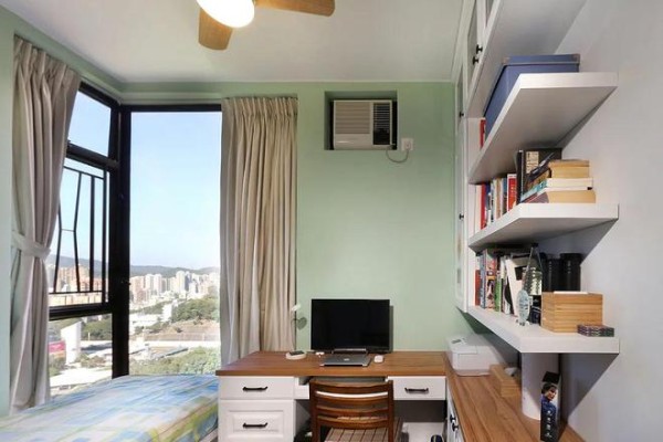 另一间房比较小,用来做书房,夫妻两偶尔加班晚了,便在这间房睡下了,采光也是超级好。