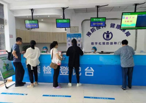 崭新干净的等候区、贴心智能的挂号区……6月26日上午,记者刚进广丰区永丰街道社区卫生服务中心的大门,一眼就被门诊柜台上的数字化叫号动静吸引了,预防接种区虽然人来人往,但一直井然有序,从门诊登记台、接种台到留观区,家长只要1次取号,便可通过语音提示、显示屏的显示完成从登记到留观的整个过程。