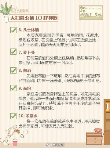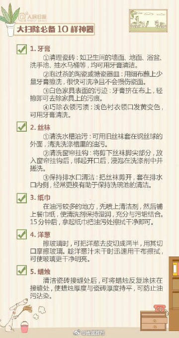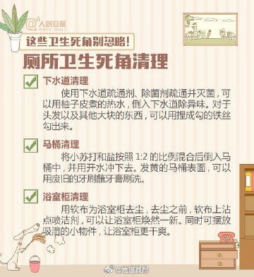 【大扫除实用清洁技巧】厨房、厕所、卧室、客厅的卫生死角该怎么清理?哪些大扫除神器能助你一臂之力?清扫中需警惕哪些误区?…实用清洁技巧,戳图了解↓↓赶紧打扫起来,省钱又省力!分享收藏,你一定用得到!
