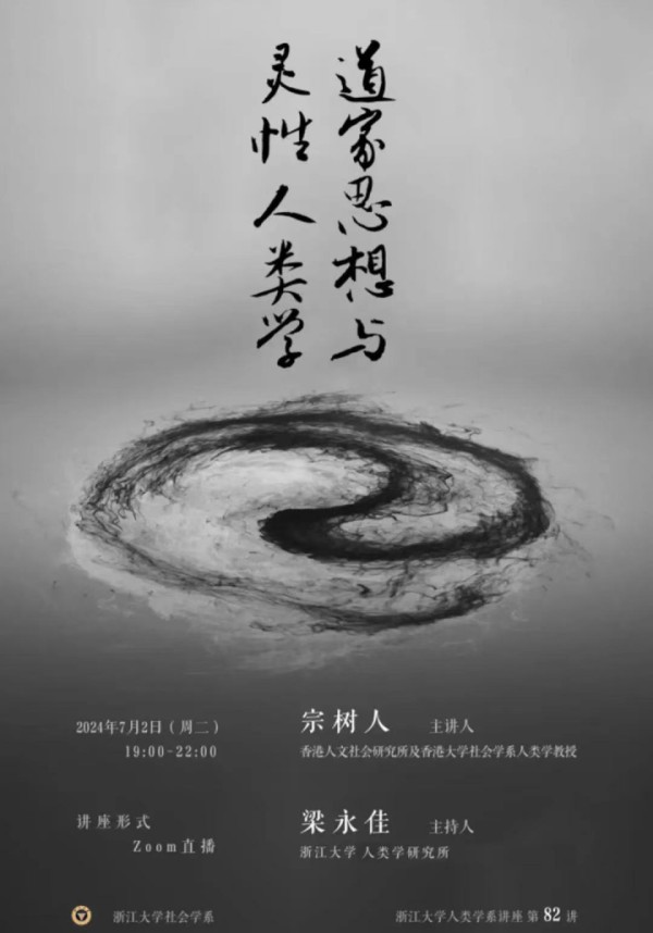 近日,浙大人类学系列讲座(浙江大学亚洲文明研究院系列讲座)邀请了宗树人开讲。本次讲座由浙江大学人类学研究所梁永佳教授主持,讲座主题为“道家思想与灵性人类学”。