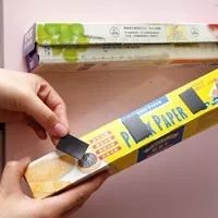 到文具店买一块自黏式软性磁铁,剪成适当大小后,贴在铝箔纸、保鲜膜或盒装抽取式面纸包装盒背面,就能随手黏在冰箱壁上,方便拿取又省空间。