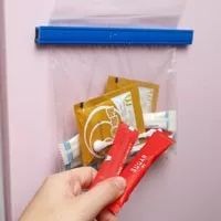 喝咖啡或吃快餐常会附上小包装的砂糖、奶精、酱包,精明的婆婆妈妈当然要留下来慢慢用。只要统一收集在夹炼袋里,用长条型磁铁固定在冰箱上,就能兼顾保存和收纳。