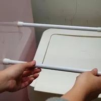 1.准备2枝伸缩杆,调整长度后牢牢撑在冰箱或橱柜缝隙之间。