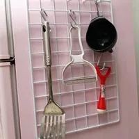 如果空隙小到连伸缩杆都放不进去,那就利用挂勾挂上格子网,搭配S型挂勾,就能收纳锅铲、打蛋器之类的厨房用具。