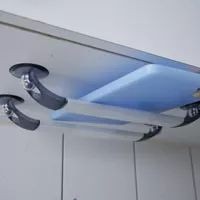 用两个吸盘式毛巾架贴在厨房上柜底部,就可以用来收放砧板,而且绝对通风,不怕发霉。只要塞得下,把砧板换成锡箔纸、保鲜膜也不赖。