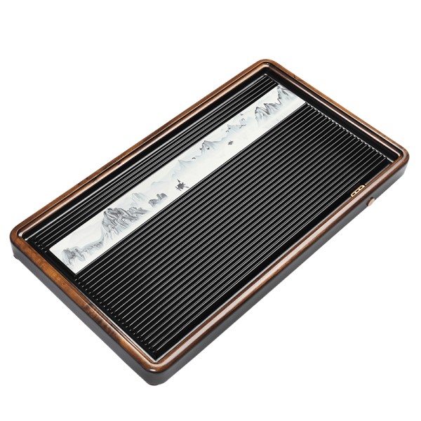 精美的山水画设计,增添茶室的艺术氛围。 高品质木质材料,耐用且美观。 防滑条纹设计,使用安全。金镶玉电木茶盘特别适合那些热爱茶文化的人士。它不仅能够为您的茶道增添一份优雅,更能提升您品茶的整体体验。无论是家庭聚会还是朋友小聚,这款茶盘都能成为您茶桌上的亮点。