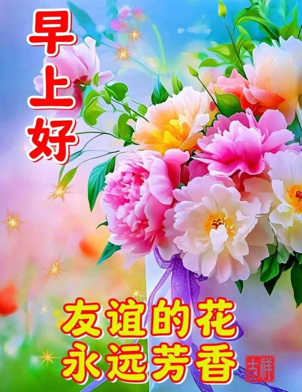 祝福的鲜花,永远芬芳;结下的缘分,永远不忘;满满的祝福,清晨送上;健康的心态,永远阳光。送上我祝福,明天更好。愿我们开心、快乐每一天。早上好!