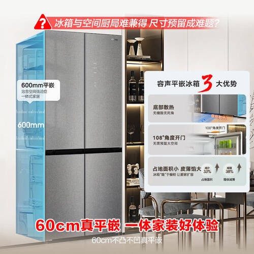 这款冰箱采用60cm的超薄平嵌设计,显著提高了空间利用率。无论是现代厨房还是小户型家居,容声500升冰箱都能完美融入,保持整体美观。其精致的外观设计,满足了追求简约风格用户的需求。