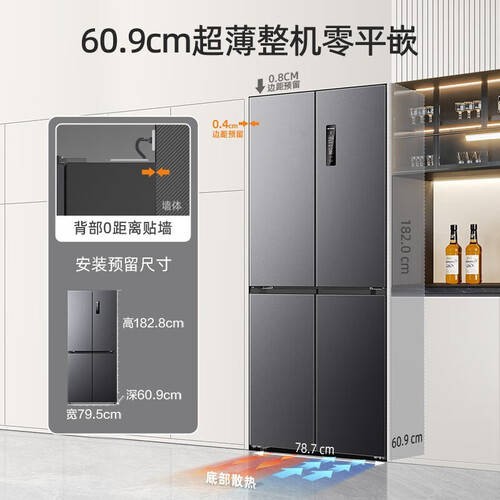 这款美菱十字四开冰箱以其超薄设计和智能技术,成为现代家居的完美伴侣。宽仅60.9厘米的机身,轻松融入各种家居环境,既节省空间,又提升了整体家居格调。采用先进的变频技术,能效表现极佳,为家庭带来更节能的使用体验。