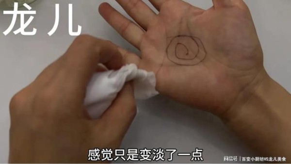 由此可见,这种笔留下来的笔迹是很难被去除的。让人匪夷所思的是,我们把它画在手上面之后,用几滴风油精或者是咱们刚才的酒精等等,随随便便上面任意一种方法都能把它去得无影无踪。