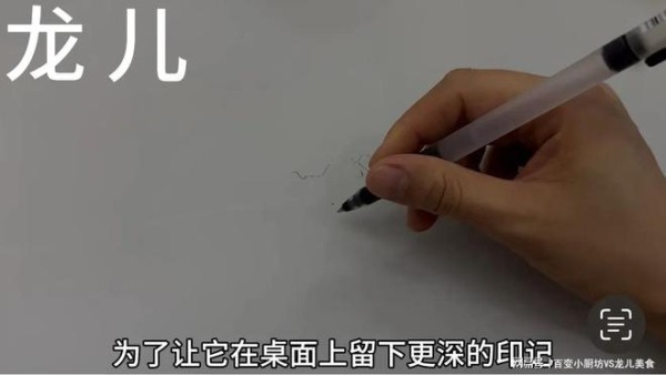 再来看第2种方法,第2种方法我们用这种圆珠笔来做一下实验,圆珠笔要画在这个桌面上感觉有一点点困难,我们先画在本子上验,画好之后我们在本子上面来试一试能不能把它去除,喷上一点我手中的这个东西,然后用手轻轻的去搓,刚开始搓擦的过程中并没有看到任何变化。