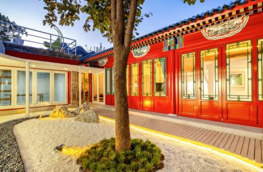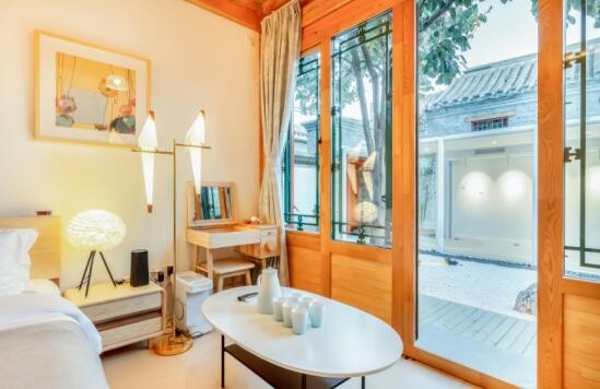 据途家和京东参与改造“生活美学屋”的平台设计师介绍,小院在保留古建筑的基础上进行了空间重塑,借助一条玻璃廊道将入口、庭院、会客厅、房间联系起来围合成内向型庭院,视觉无遮挡,廊道内可游可观。小院西南角隐蔽着一处院中院,与会客厅相连,别有洞天。