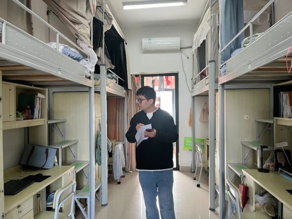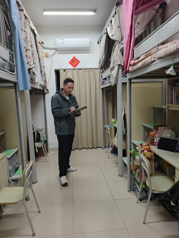 检查过程中,辅导员们重点关注宿舍卫生状况和流感防控措施落实情况。首先对宿舍地面、桌面、垃圾清理等卫生环境进行全面检查,对卫生状况较差的宿舍现场指导整改,引导学生养成良好的卫生习惯。其次强化学生的通风换气意识,建议每天至少开窗通风2-3次,保持室内空气流通,有效降低病毒传播风险。同时进行了安全隐患排查,提醒学生注意用电安全。