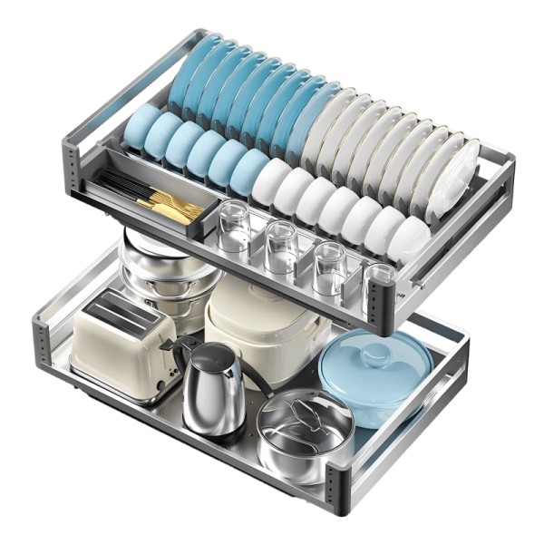 其分离式收纳设计,提升了使用的便捷性,让取放碗碟变得更加顺畅。双层碗篮的设计,科学分区收纳,可以轻松容纳多达19个碗碟和4个杯子,优化厨房空间的同时,让您的餐具整齐有序,再也不必为找不到合适的碗碟而烦恼。