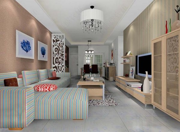 在一面墙上放上两张画,可以增加布局的情趣,室内也不会有拘束感。装饰画在摆放时要根据不同的空间进行颜色搭配。一般现代家装风格的室内整体以白色为主。客厅内尽量选择鲜亮、活泼的色调。