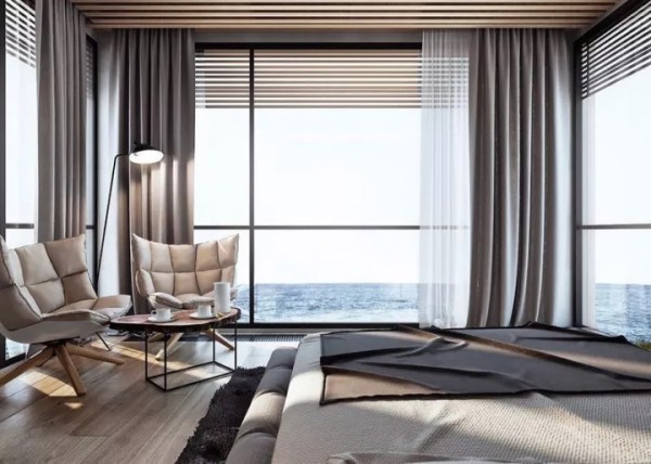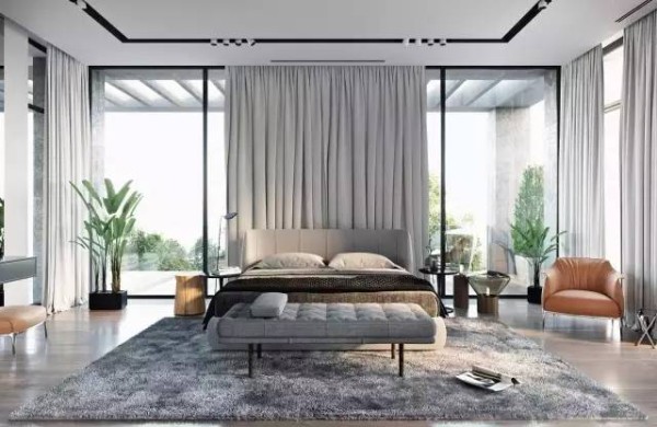 而卧室的窗帘最好选择双层一层厚实的用来遮光、保温、隔音一层轻盈的则用来营造轻松、慵懒、柔软的氛围有效的提升卧室的舒适度地 毯
