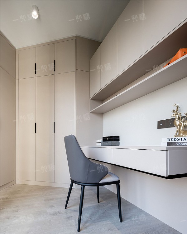 比如将衣帽间置于书房之内,或衣帽间里采用折叠床,根据需求的侧重去规划功能占比。两者合二为一,衣帽间有了,书房或客卧也有了。