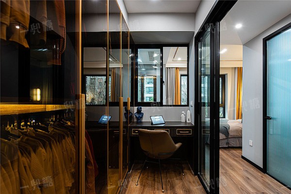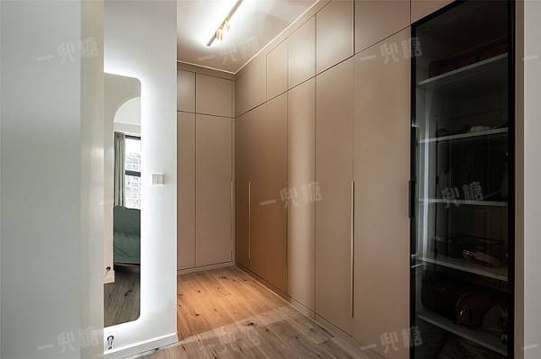 通过玻璃门、定制柜体或轻体墙隔开衣帽间与卧室,独立又不影响隐私,既整洁又美观,实用和舒适二者兼得。