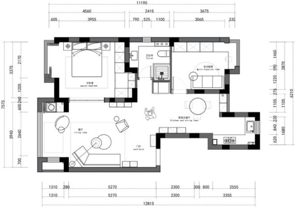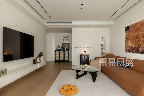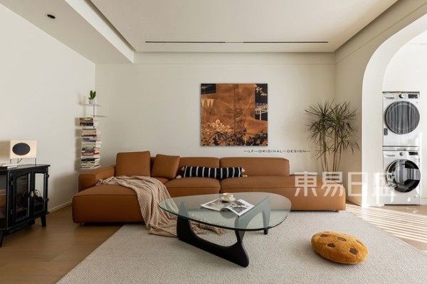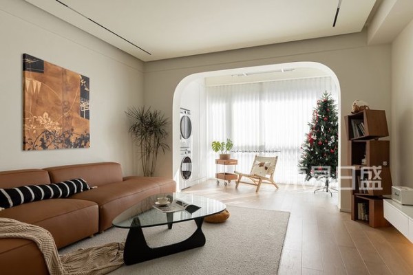 客厅区域衔接阳台一整个打通,给室内带来充足的采光,非常敞亮,衔接处做了弧形处理,会更加柔和。