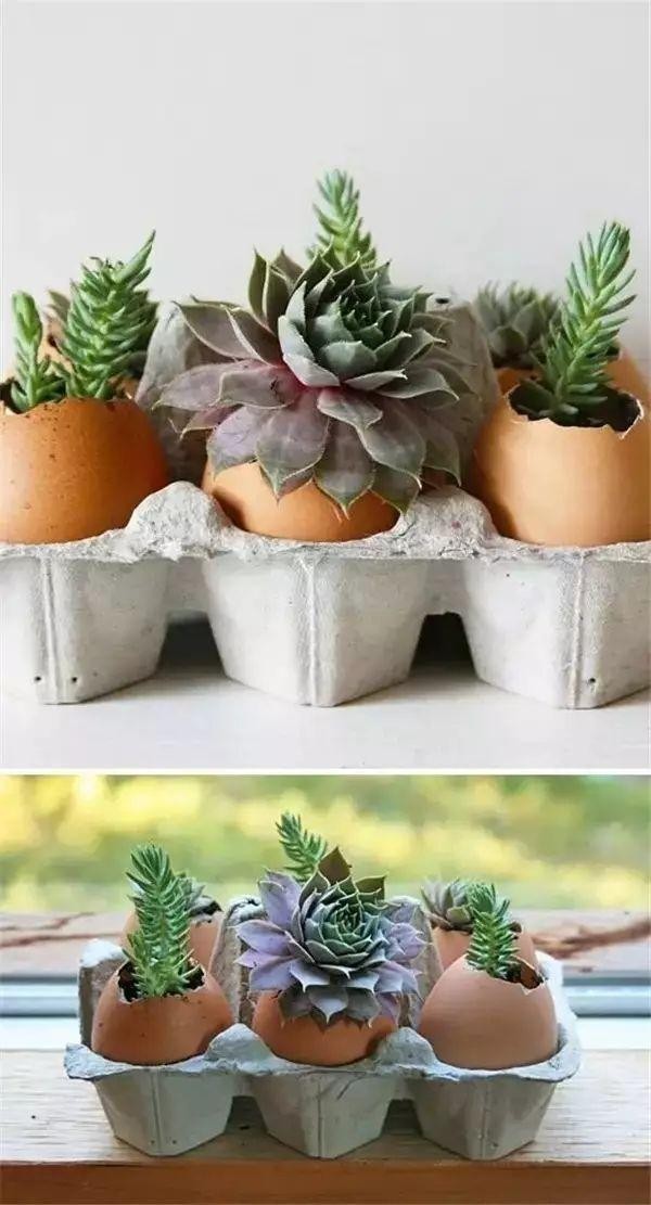 鸡蛋的包装盒也不要丢掉啦,可以种上各类小多肉。