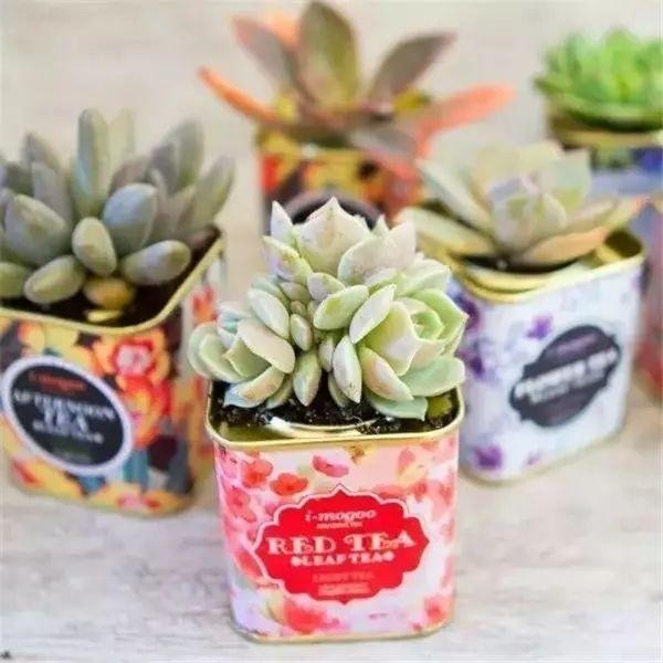 爱喝茶的朋友,家里一定有很多这种锡铁罐子,你们一定想不到还能拿来种盆栽吧,放在家里的任意一个角落都十分赏心悦目。