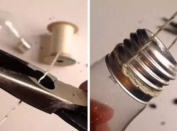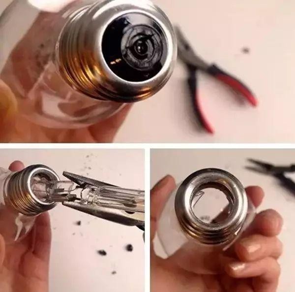 拆除时,先用钳子拧下灯泡底座的胶壳,然后将灯芯小心抽出。