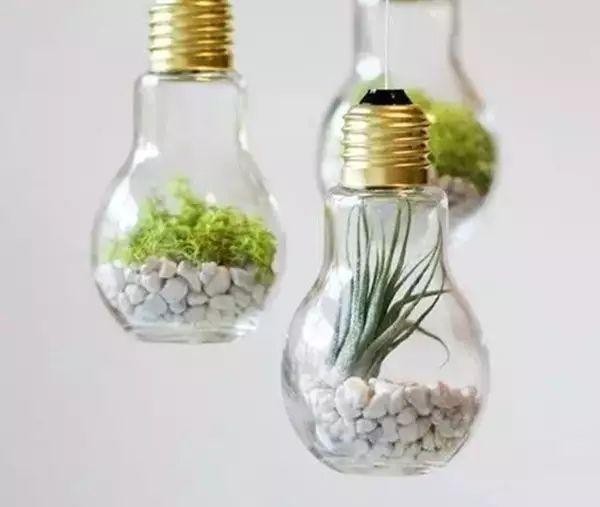灯泡本身流线般的造型和玻璃材质就十分具有美感,废旧的灯泡稍微改造一下就是一个完美的小型盆栽容器,可爱精致,可水培可土栽。