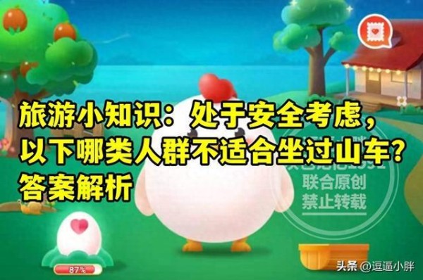 以上就是蚂蚁庄园教育题目:旅游小知识出于安全考虑以下哪类人群不适合坐过山车?以下哪种水果有百果之宗之称?的答案解析,希望大家会喜欢。